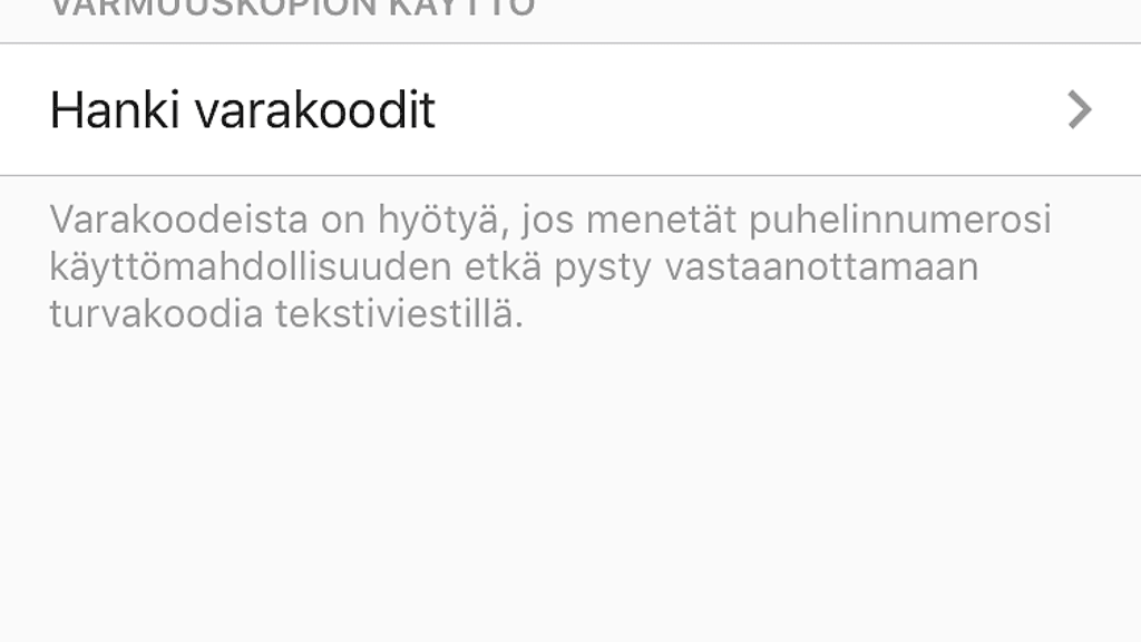 Monissa muissakin palveluissa erittäin suositeltava kaksivaiheinen todennus vahvistaa uuden sisäänkirjautumisen tarvittaessa salasanan lisäksi puhelimeen viestinä lähetettävällä koodilla. Näin hyökkääjä ei pääse käsiksi käyttäjätiliin, vaikka saisikin käsiinsä tilin salasanan.