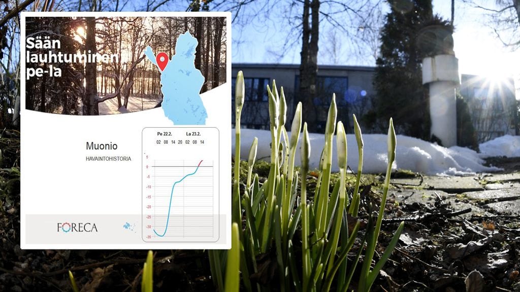 – Muoniossa sää lauhtui perjantaiaamun ja lauantai-iltapäivän välillä eniten: 41.6 asteella, -35.1 asteesta +6.5 asteeseen. Kittilä & Rovaniemi olivat seuraavana 39.8 asteen lauhtumisella, Froeca kertoo Twitterissä.