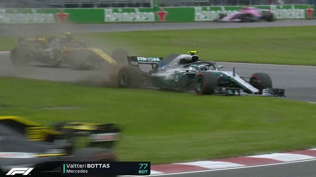 Valtteri Bottas oli pilata huippukisansa Kanadan GP:n 56. kierroksella.