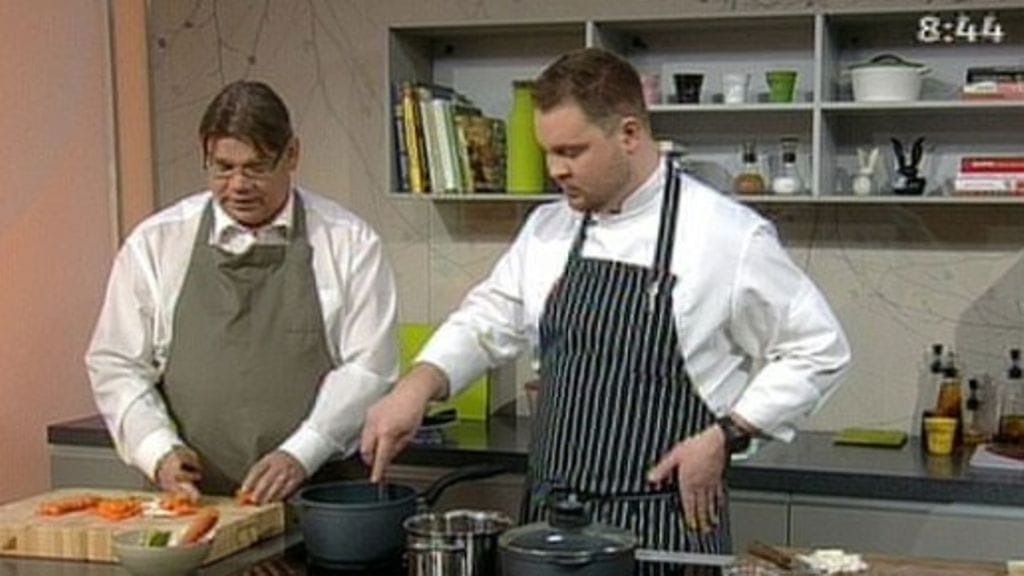Timo Soini ja Makuja-kokki Akseli Herlevi valmistivat perjantain Makuja-ohjelmassa syksyyn sopivaa jauhelihakeittoa. Tällä herkulla onkin Perussuomalaisten puheenjohtaja ja kuntavaaliehdokas Timo Soinille suuri merkitys ja se onkin herran lempiruoka