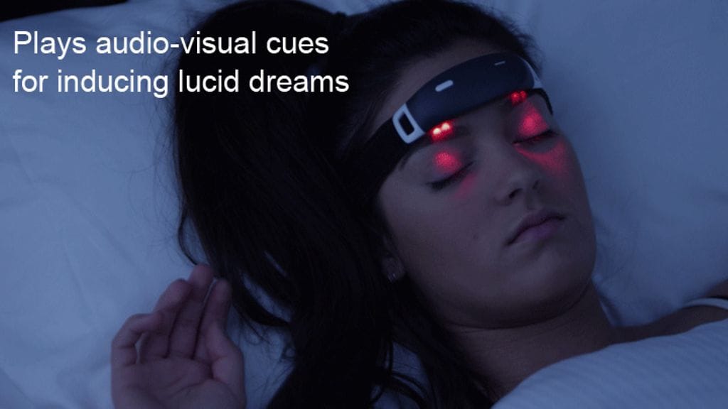 Led-valoja nukkujan silmäluomille väläyttelevä otsapanta lupaa uneksijalle aidontuntuisia unia.
