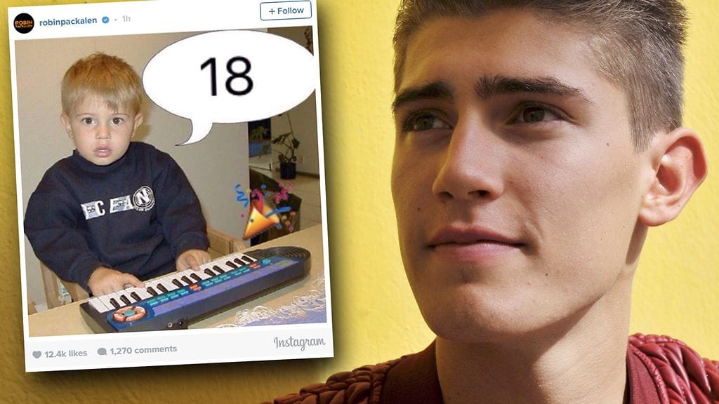 Pikku-Robin soittaa kuvassa koskettimia. Laulaja on muokannut hauskaan kuvaan puhekuplan, jossa lukee tänään täyteen tulleet ikävuodet: 18.