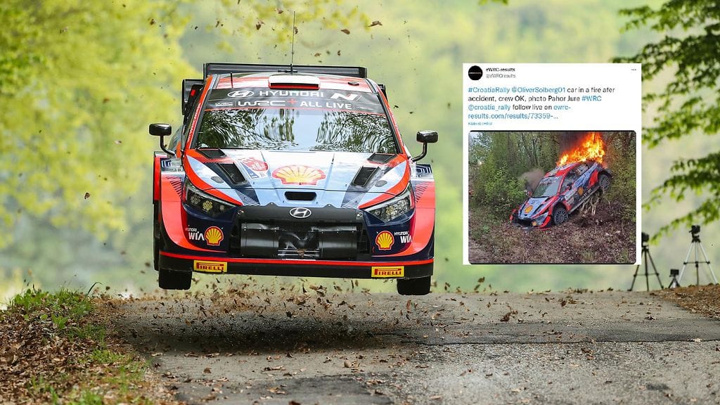 Oliver Solberg joutui keskeyttämään Kroatian MM-rallin yhdeksännellä erikoiskokeella. 20-vuotiaan ruotsalaisen Hyundai syttyi kovasta vauhdista sattuneen ulosajon seurauksena liekkeihin.