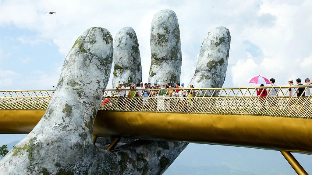 Golden Bridge -silta avattiin yleisölle kesäkuussa Vietnamin rannikolla sijaitsevaan Da Nangin satamakaupunkiin.