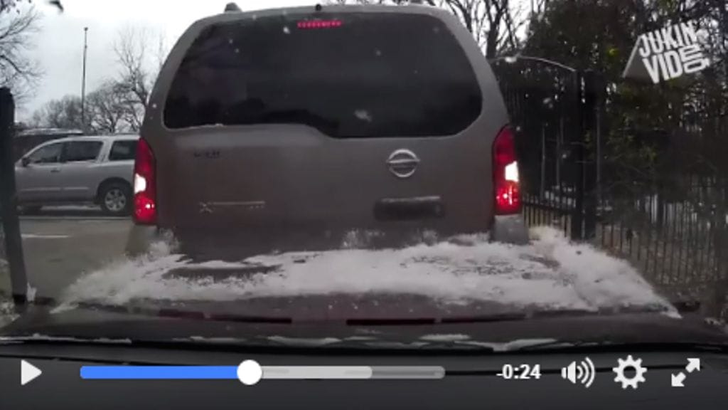Facebookiin ladatulla videolla sisko peruuttaa taakseen katsomatta kotipihaan tulossa olevan auton keulaan – ja syyttää toista kuskia onnettomuudesta!