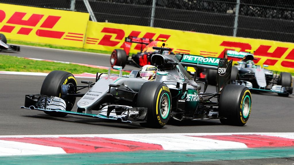 Hamilton ajoi Meksikon kisassa avausmutkaan selvästi ykkösenä, mutta hän lukitsi eturenkaansa ja meni pitkäksi. Hamilton jatkoi matkaansa nurmikon yli ja näytti saavan selvän edun takaa-ajajiin, mutta rangaistusta ei tullut.