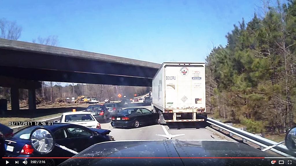 Väliä kannattaa pitää edessä ajavaan ajoneuvoon silläkin uhalla, että oma auto ohitetaan jonossa. Maaliskuun puolivälissä kojelautakameralla kuvatulla videolla amerikkalaiskuskit saavat kokea kantapään kautta turvavälien välttämättömyyden.
