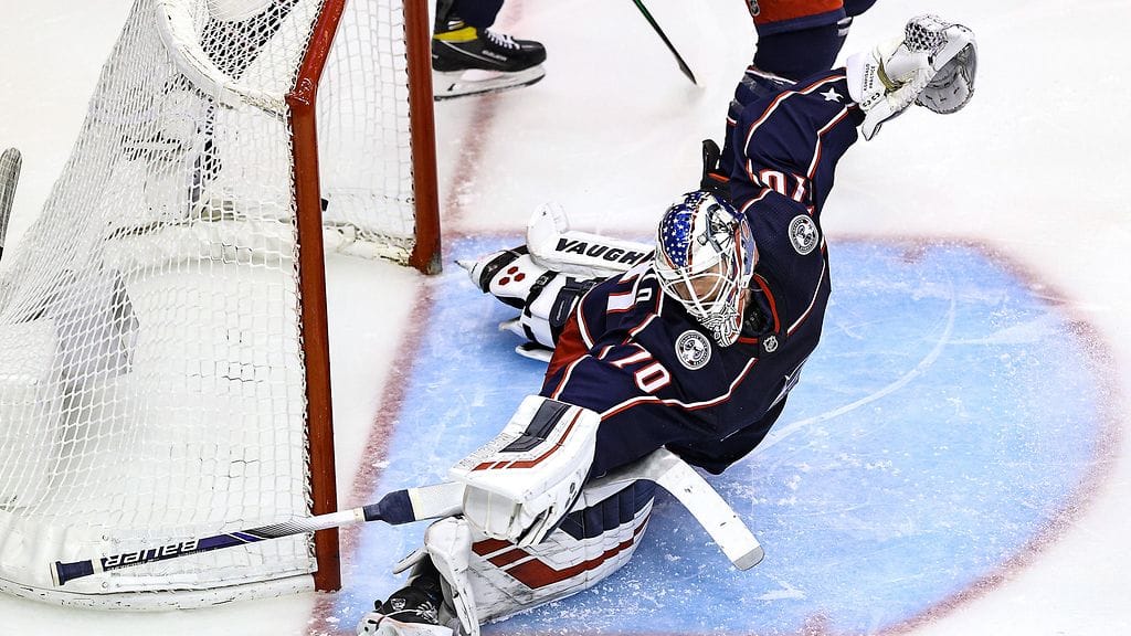 Suomalaisvahti Joonas Korpisalo torjui Columbuksen tolppien välissä 20 laukausta.