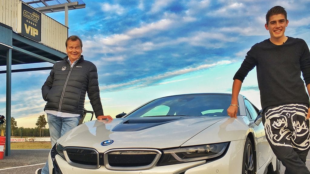 – Ei sua kyllä huimaa yhtään, jarrua! Nyt pelottaa, Alén sanoo ja hakee turhaa kädellään kauhukahvaa BMW i8:n ohjaamossa.