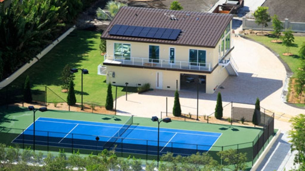 King on rakennuttanut liki 700 neliömetrin kartanonsa pihamaille tenniskentän ja uuden autotallin. Lisäksi pihalta löytyy uima-allas.