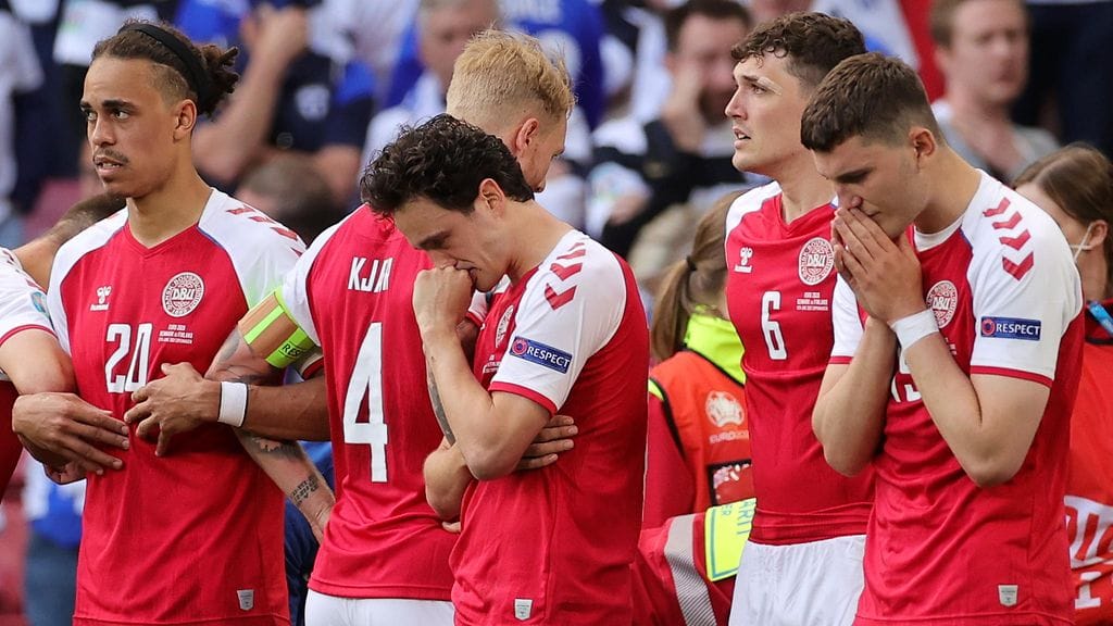 Tanskalaispelaajat joutuivat kokemaan kovia, kun joukkueen tähtipelaaja Christian Eriksen tuupertui kentän pintaan Suomea vastaan pelatussa ottelussa. Pelaajat joutuivat seuraamaan läheltä, kun heidän joukkuetoverinsa taisteli elämästään.