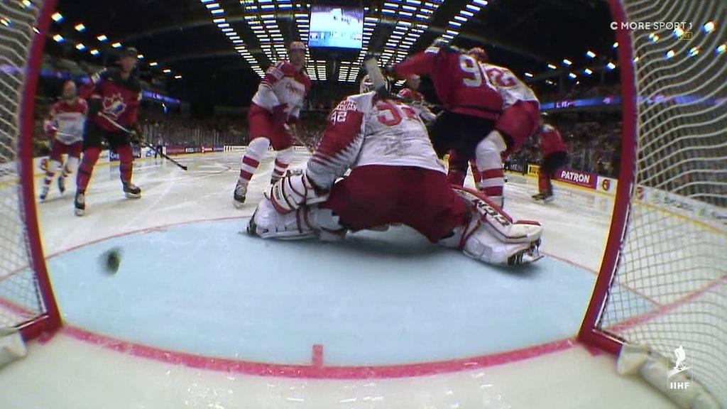 Kanadan tekemää maalia Tanskan verkkoon tarkistettiin pitkän aikaa jääkiekon MM-kisojen ottelussa, mutta lopulta osuma hylättiin maalivahdin häirintänä.