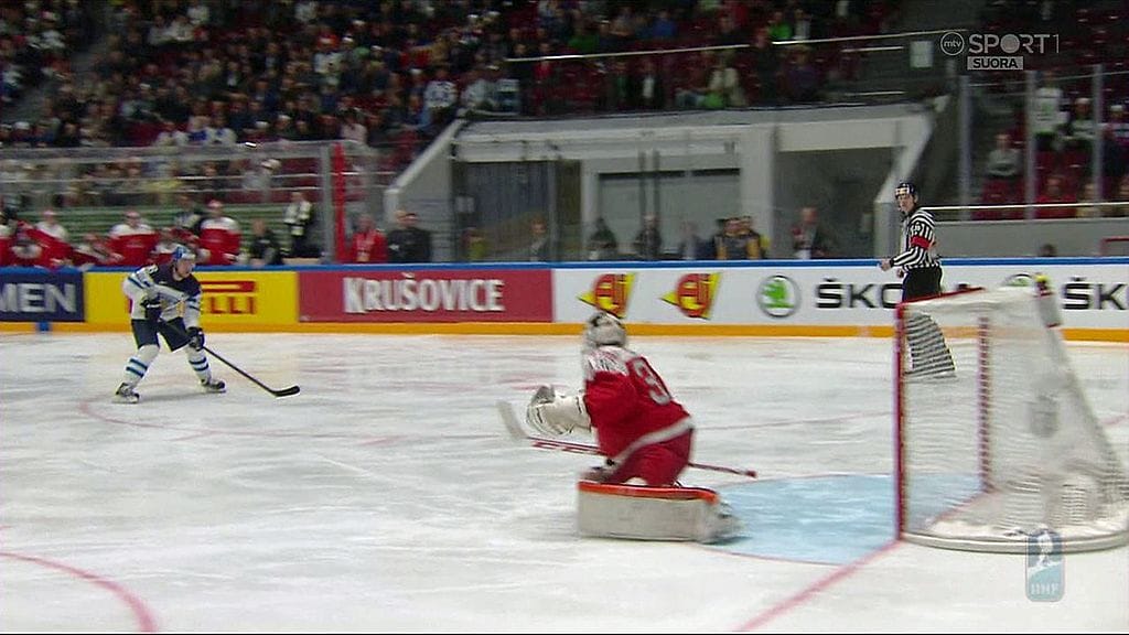 Pienikokoinen tanskalaisvahti jähmettyi tämän jälkeen torjunta-asentoon. Jokinen pääsi lyömään kiekon pienestä kulmasta kohti tyhjää maalia, muttei osunut tolppien väliin.