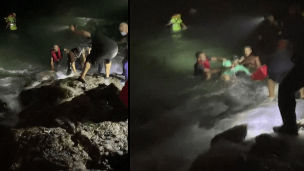 Viranomaisten pelastusoperaatio saarella tallentui videomateriaalille. Yläpuolelta löytyvältä videolta on nähtävissä, kuinka hädissään olevia ihmisiä pelastetaan veden varasta.