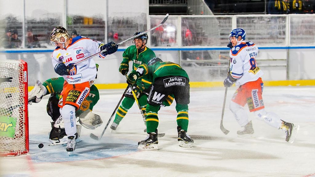 Tällä asetelmalla pelattiin perjantaina SM-liigan tämän kauden kolmas Tampereen paikalliskamppailu. Ilves ja Tappara mittelivät paremmuudesta Sorsapuiston kentällä, jossa monet tamperelaiskiekkoilijat ovat hankkineet mailataitonsa ja kehittäneet harhautuskikkansa.