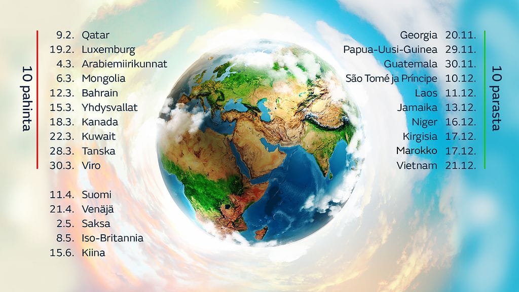 Pahimmassa tuhlarimaassa luonnonvarat käytettiin loppuun lähes kuusi kuukautta nopeammin kuin maailmassa keskimäärin. Maailman vähiten kuluttavaan matkaa on huikeat 10,5 kuukautta.