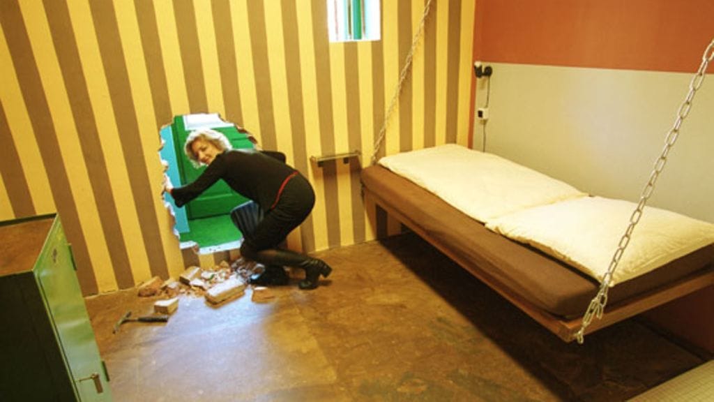 Berliinissä on mahdollisuus yöpyä varsin erikoisessa hotellissa. Huoneet ovat kuin suoraan elokuvasta – vai mitä mieltä olet lentävästä sängystä, yöpymisestä vankisellistä tai peilisalissa?