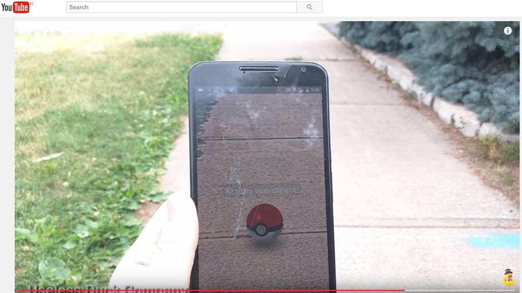 Videolla idean isä nappaa pokémonin heittämällä puhelimensa kirjaimellisesti ilmaan. Oleellisesti liikkeen mukana on hyvä huutaa sanat: ”Poképallo, matkaan!” Lopputuloksen onnistumisen voit määrittää itse videon katsomalla.
