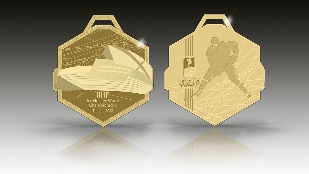 Kemiläisen Pauli Marosen suunnittelemissa mitaleissa etusivun kuva-aiheena on Tampereen uusi Uros Live -areena, joka on turnauksen päänäyttämö. Mitalin takasivua koristaa tyylitelty jääkiekkoilija.
