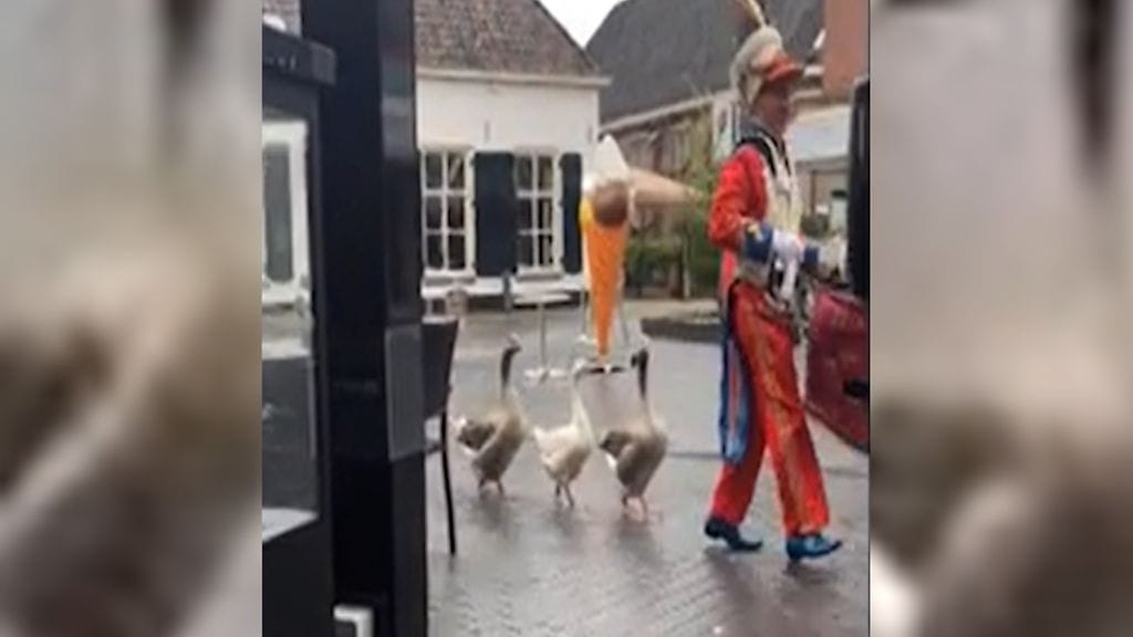 Huvittava hanhien marssi tapahtui 8. toukokuuta Alankomaissa Barneveldin kaupungissa.