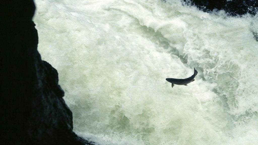 Nyt nappaa! Katso videolta, miltä näyttää, kun lohi nappaa syötistä kiinni.