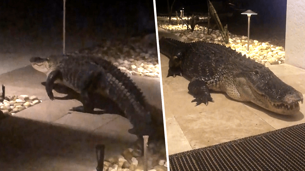 Kameralle tallentui Floridassa ennennäkemätön hetki, kun suurikokoinen alligaattori pysähtyi perheen etuoven taakse tuijottamaan sisälle.