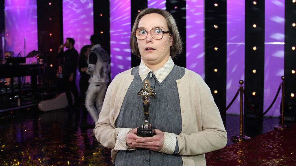 Finaalilähetyksen jälkeen kuhina jatkui kulisseissa ja kuplajuomat poksahtelivat taustalla, kun sketsihahmot vastailivat median kysymyksiin. Putouksen sketsihahmokisan tuore voittaja Aina Inkeri Ankeinen saapui haastatteluun sekavissa tunnelmissa.