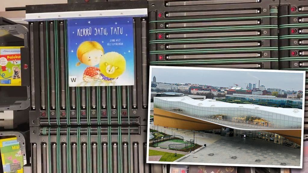 Katso ylhäällä olevalta videolta kirjojen palautushihna -spektaakkeli!