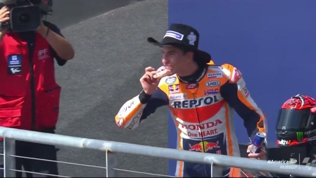 Kisan jälkeen Marquezilta nähtiin podiumilla erikoinen tempaus, kun hän söi munkkia ennen palkintojen jakamista. Taustalla oli vedonlyönti australialaisen motocross-mestarin Jett Lawrencen kanssa. Marquez oli lupautunut syömään donitsin podiumilla, jos hän voittaa kisan.