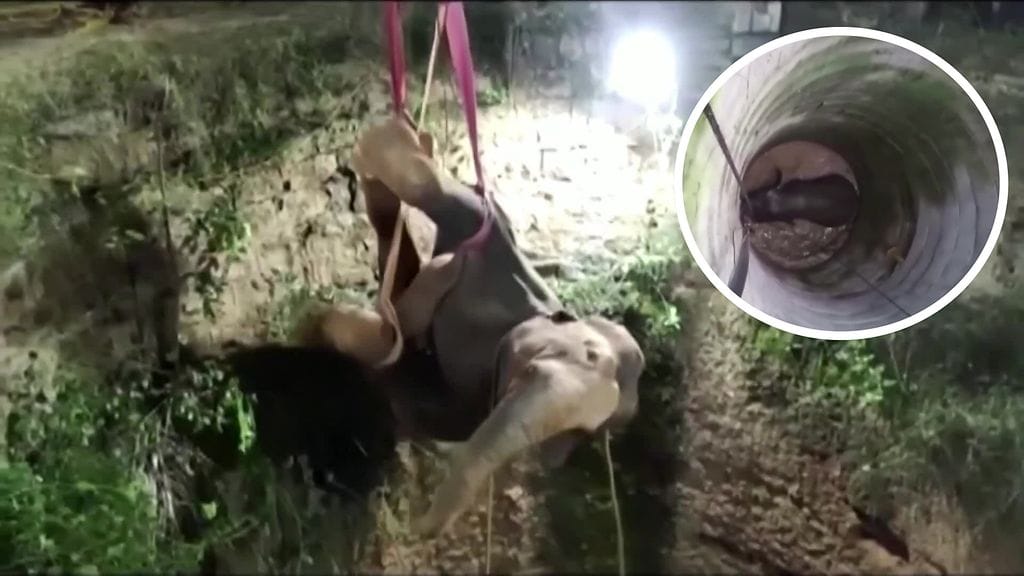 Siitä alkoi pelastusoperaatio 25-vuotiaan eli täysikasvuisen norsun nostamiseksi 16,7 metriä syvästä kaivosta. Intiannorsut ovat yleensä 2–3,5 metriä korkeita ja voivat painaa jopa 5 000 kiloa.
