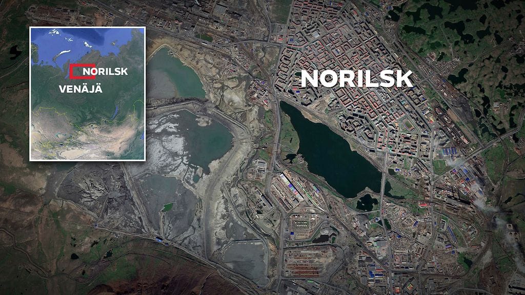 Norilskin länsipuolella sijaitseva polttoainetankki kuuluu venäläiselle Norilsk Nickel -kaivosjätille.