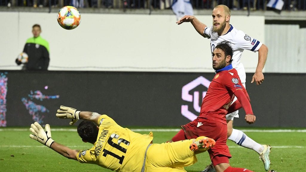 Teemu Pukki johdatti Huuhkajat komeaan 3-0 voittoon Armeniasta jalkapallon EM-karsintojen ottelussa tiistaina.