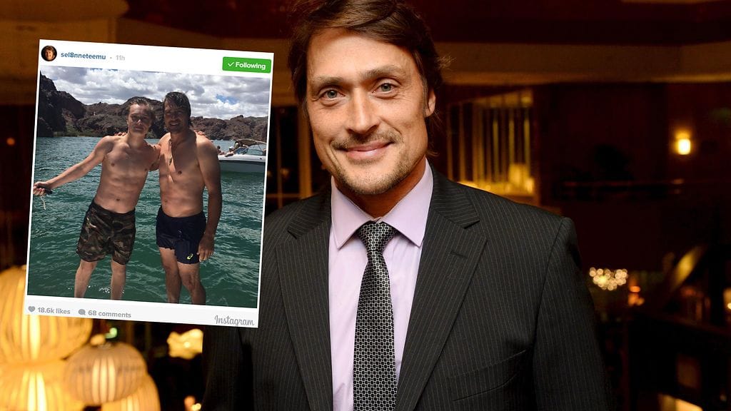 Selänne poseeraa aurinkoisissa maisemissa poikansa Leevin kanssa.