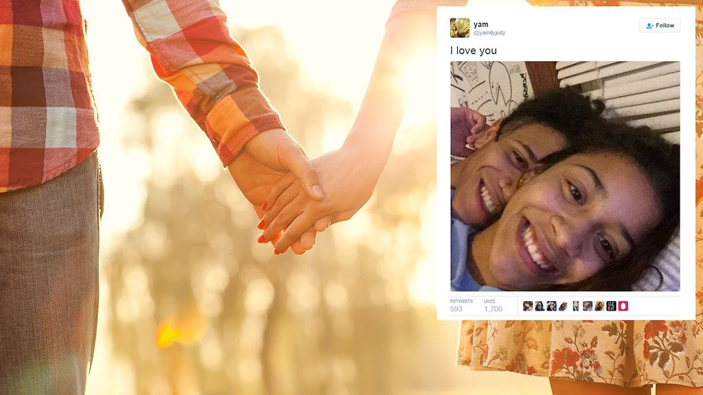 Massachusettsissa asuva pariskunta on seurustellut neljä kuukautta. Merkkipäivän kunniaksi rakastavaiset nappasivat itsestään selfien Snapchatiin, ja julkaisivat sen myös Twitterissä. Kuva sai järjetöntä huomiota. Huomaatko, miksi?