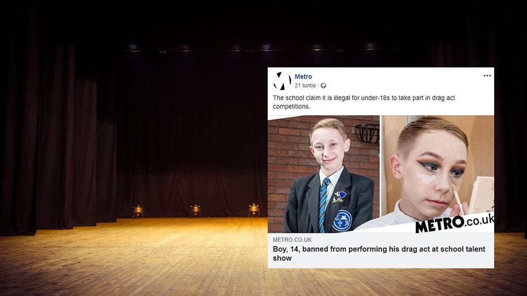 Koulu kielsi 14-vuotiasta Lewis Baileya esittämästä drag-artistia koulun kykynäytöksessä. Rehtorin mukaan se ei ole pojan eikä yleisön ikään nähden sopivaa. Lewisin mukaan kyse on siitä, että häntä ei hyväksytä sellaisena kuin hän on.