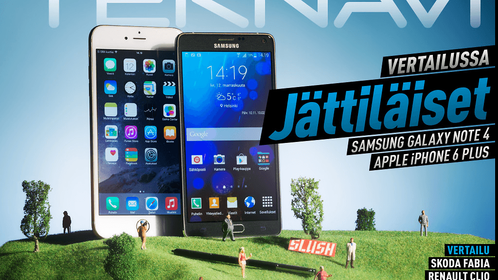 Vertailussa Samsung Galaxy Note 4 ja Apple iPhone 6 Plus. Jos näytön koko ratkaisee, niin nämä älypuhelimet ovat kukkulan kuninkaita. Mutta mitä hyötyä isosta näytöstä oikeasti on?