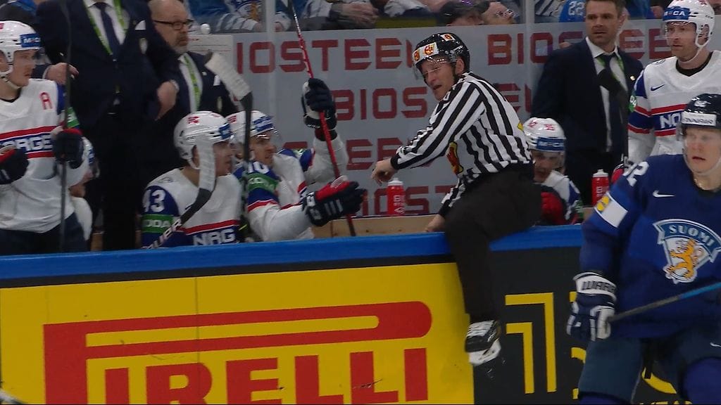 Chaput toivotettiin tervetulleeksi MM-tasolle melkoisella rytinällä. Kanadalaistuomari yritti väistää Martin Ronnildin Hannes Björniseen kohdistamaa taklausta Norjan vaihtoaition edessä, mutta osuma ei kerta kaikkiaan ollut vältettävissä.