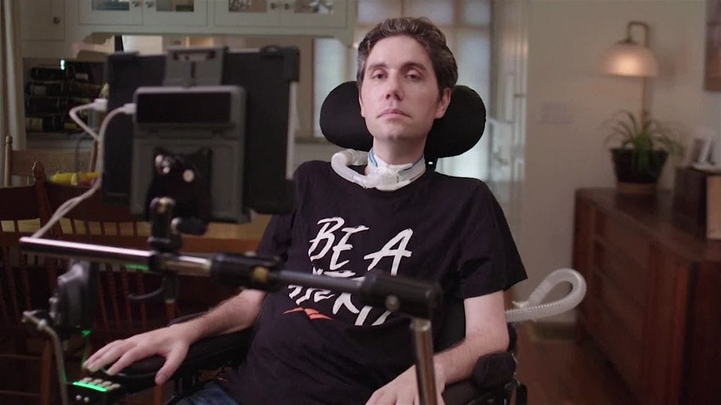 – Tervehdys Amerikka. Minun nimeni on Ady Barkan, ja puhun sinulle tietokoneäänen välityksellä, koska olen halvaantunut mystisen ALS-taudin vuoksi. Kuten monet muutkin teistä, Olen kokenut, että terveydenhuoltojärjestelmämme on perusteellisesti rikki.
