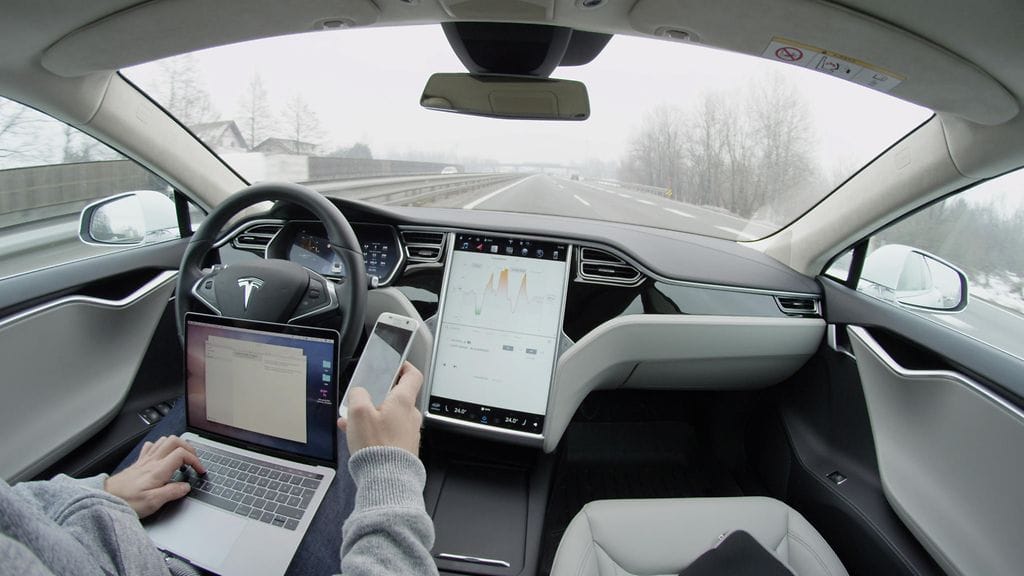 – Hän ei tee mitään. Auto ajaa itse itseään, videolla todettiin.
