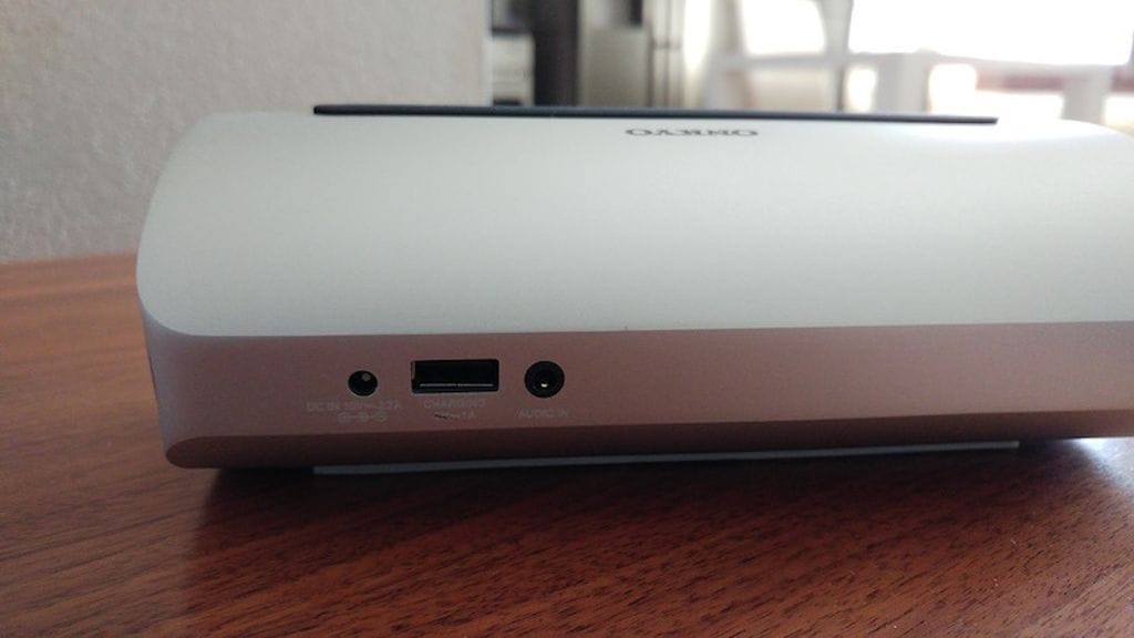 Tässä mielessä Onkyo on onnistunut hyvin. X6 on muotoiltu houkuttelevasti ja sen koko on tarpeeksi pieni mukana kannettavaksi. Väritykseltään laite yhdistää mustaa ja hopeanharmaata. Laitteen takaa löytyvät liittimet virtakaapelille, äänilähteelle ja lisäksi tarjolla on usb-liitäntä ulkopuolisten laitteiden lataamista varten.