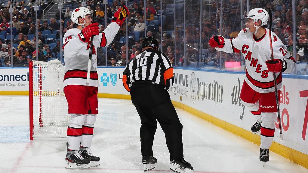 Carolina Hurricanesin suomalaisduo Teuvo Teräväinen ja Sebastian Aho oli hienossa iskussa, kun Carolina haki 5-4-jatkoaikavoiton Buffalo Sabresin vieraana.