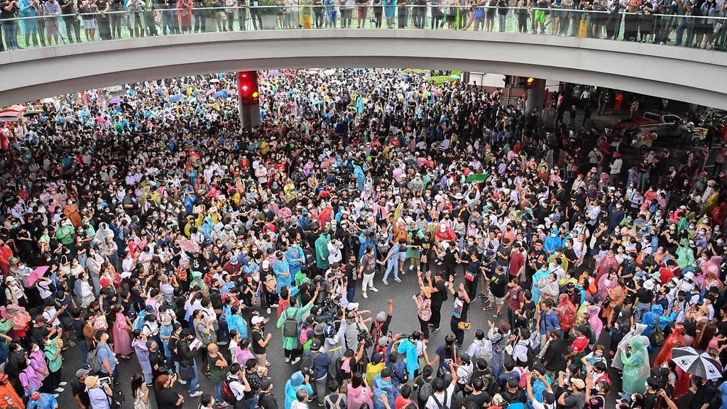 Prayut kielsi eilen yli neljän ihmisen kokoontumiset. Siitä huolimatta kymmenisentuhatta mielenosoittajaa jalkautui kaduille protestoimaan.
