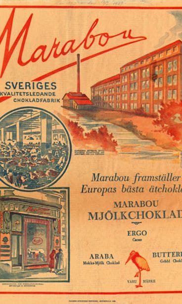 1916 Marabou-suklaan brändi syntyy, kun Trone-Holst laajentaa Ruotsiin.
