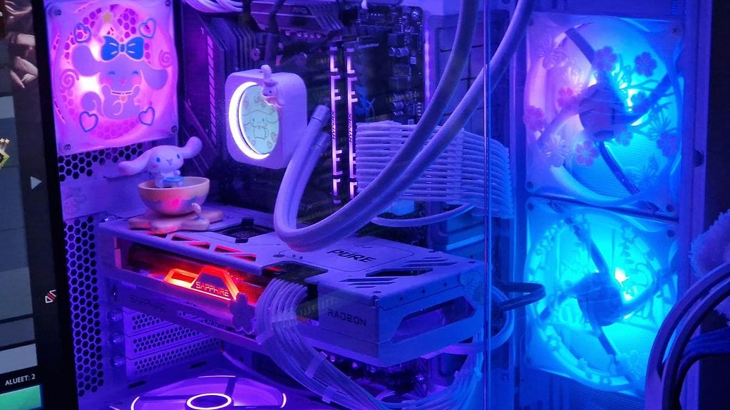 Karoliinan oma tietokoneen keskusyksikkö, buildi, perustuu hänen suosikkihahmoonsa cinnamorolliin Sanrio-hahmomaailmasta.