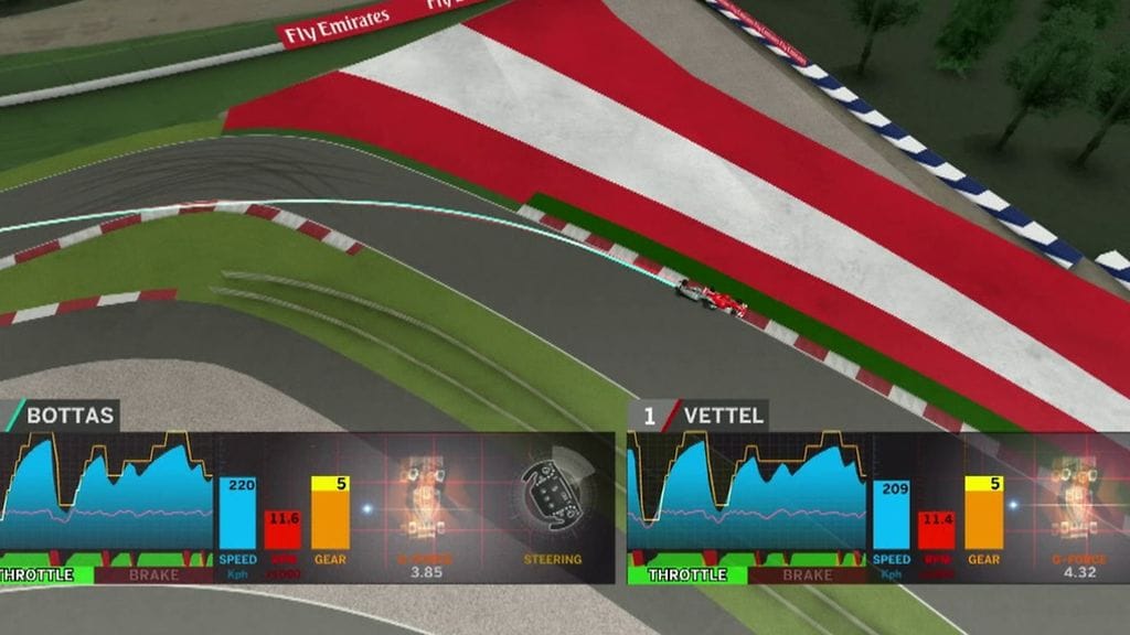 Tekninen asiantuntija Ossi Oikarinen käy läpi kierrosta, jonka alussa Bottas saa parhaimmillaan usean autonmitan edun Vetteliin. Bottas itse kertoi, että sai ykkösmutkan jälkeen pientä imuapua edellämenneestä Force India -autosta.