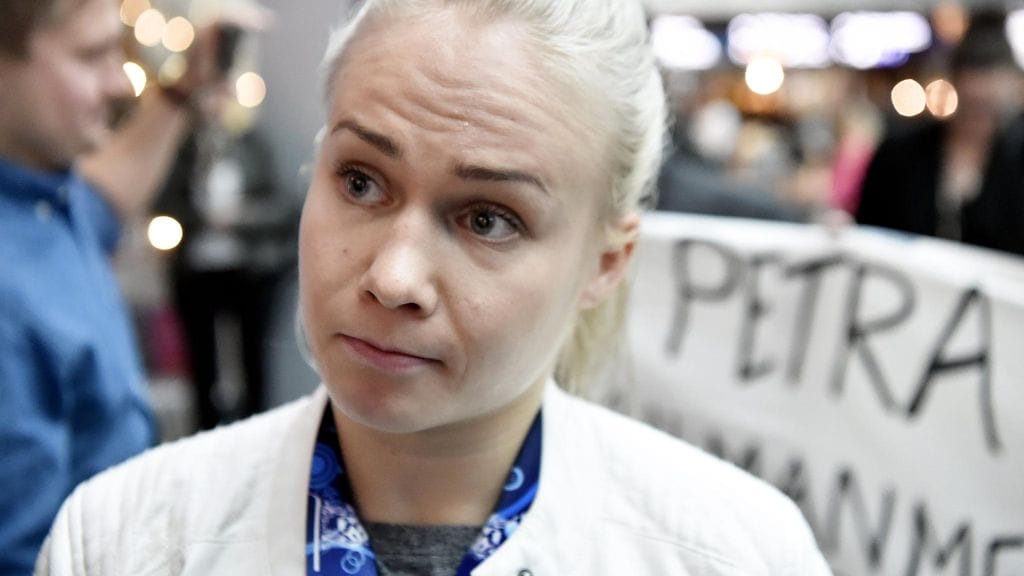 Petra Olli palasi Suomeen tänään maailmanmestarina. Tunnelma lentokentällä oli riehakas ja onnellinen.