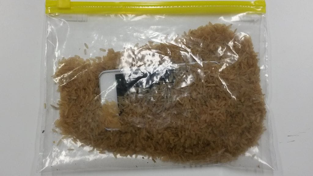 – Laita puhelin kuivumaan muovipussiin, jossa on keittämätöntä riisiä. Voit myös tiputtaa puhelimen riisipakettiin. Eri ohjeista riippuen anna puhelimen kuivata tällä tavoin parista tunnista pariin päivään.