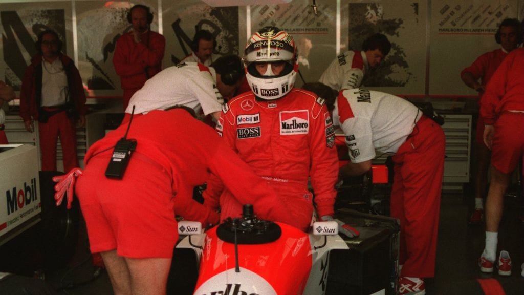 Seuraavalle kaudelle hän vaihtoi McLarenin auton alleen, mutta se oli lähinnä surkuhupaisa päätös hänen muutoin komealle F1-uralle. Mansell ei mahtunut alkukaudesta autoonsa ja pääsi mukaan kisoihin vasta kauden kolmannessa kisassa, kun autoa oli sovitettu hänen mittoihinsa. Ongelmat jatkuivat seuraavassa kisassa ja turhautunut Mansell päätti jättää leikin sikseen ja lopetti uransa siihen.