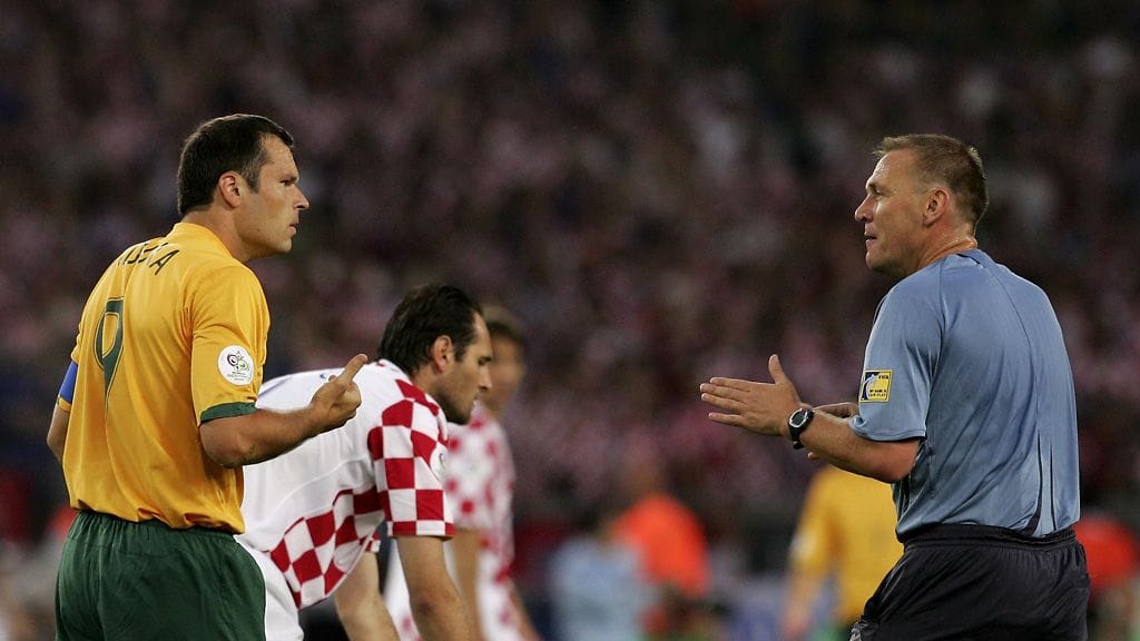 Englantilaista Graham Pollia on yleisesti pidetty yhtenä maailman parhaista tuomareista, mutta vuoden 2006 Australia-Kroatia-ottelussa hänelle sattui paha hassi. Hän näytti Kroatian Josip Simunicille jo toista keltaista korttia, mutta ei ajanut häntä kentältä. Simunic ei tilannetta hätkähtänyt eikä parantanut tapojaan, vaan kokeili vielä kerran onneaan ottamalla ottelun kolmannen keltaisen korttinsa. Siinä vaiheessa Poll oli jo hereillä ja ajoi pelurin vihdoin kentältä.