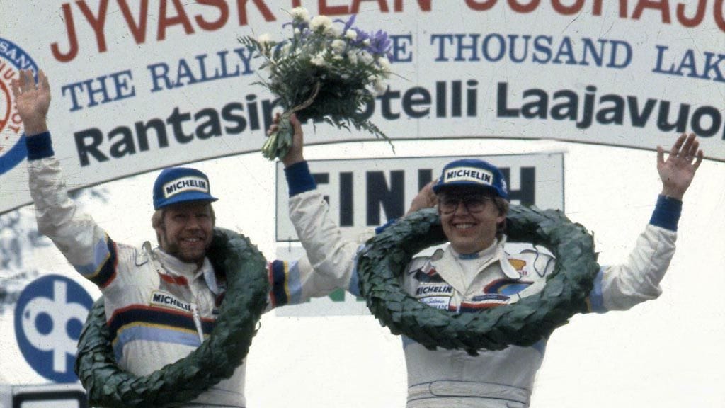 Timo Salonen juhli kahdesti Suomen rallin voittoa 1980-luvun puolivälissä. Salosella ja kartturi Seppo Harjanteella oli allaan Peugeot 205 Turbo 16 E2. Harjanne juhli Suomen rallin voittoa myös Tommi Mäkisen kartturina myöhemmin.